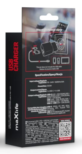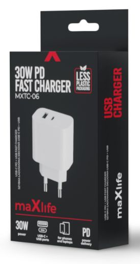 30W effekt Hurtige opladningsprotokoller Universel kompatibilitet To udgangsporte 1x USB + 1x USB-C Til telefon og tablets mm.