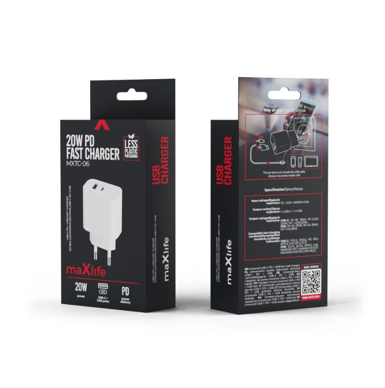 maXlife MXTC-05 PD+USB Wall Charger 20W